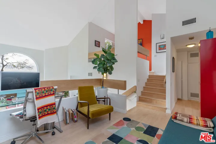 Experience refined living in this exquisite architectural, multi-level hilltop townhouse, perfectly perched to capture some city views in the historic enclave of Whitley Heights. This light-filled residence offers three bedrooms (third bedroom is a loft), two bathrooms, and a versatile den/loft, all enhanced by soaring ceilings and gleaming hardwood floors. Enjoy the warmth and elegance of fireplaces in both the living room and the primary suite, along with seamless indoor-outdoor flow to two patios – ideal for relaxing or entertaining. With direct access from the attached two-car garage with EV Charger, plus additional storage, convenience is built into every detail. The home also features central heating and air conditioning and spans 1,686 square feet per the assessor. Community amenities include a sparkling pool and spa.