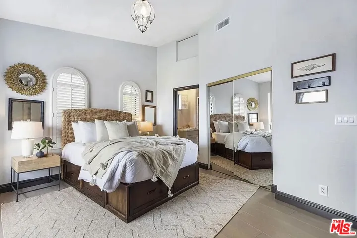 Perched atop the hills of the Hollywood Dell, stands this custom-built Mediterranean home. Enjoy expansive city and ocean views from the open concept living room with 20-foot ceilings characterized by wrought iron chandeliers and a built-in wet bar. A formal dining area connects the great room to a gourmet kitchen complete with Thermador range, Subzero refrigerator, Bosch dishwasher, a copper sink and ample built-in storage. Upstairs, find a flexible mezzanine level with 3/4 bath, which serves as the perfect setting for a den, office or library. On the top level are two guest bedrooms with full bathrooms, and a hotel-like primary suite with fireplace and private balcony with breathtaking views. Host dinner parties on the rooftop garden, adorned with fragrant roses and citrus vines. Other features include:French oak hardwood floors, elevator, 3-car garage and Pella doors and windows.
