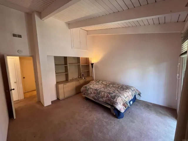 Location, location, location! When choosing a condo, remember this: you can always change flooring and paint, but you can’t change where the unit sits. This home is ideally located just steps from the community pool and convenient visitor parking (a huge plus—something you may not think about now but absolutely will once guests come over!). As an end unit, it also enjoys extra windows that bring in abundant natural light that interior units lack. Double doors open to a spacious entry with vaulted ceilings. The first floor offers a bedroom and a full bathroom, along with a large, open living room that connects to your private patio. The patio provides direct access to two carport parking spaces plus extra overhead storage. Upstairs, you’ll find a large secondary bedroom and a generous primary bedroom—both featuring private decks. All this, and you’re close to SeaWorld and, well… just about everything!