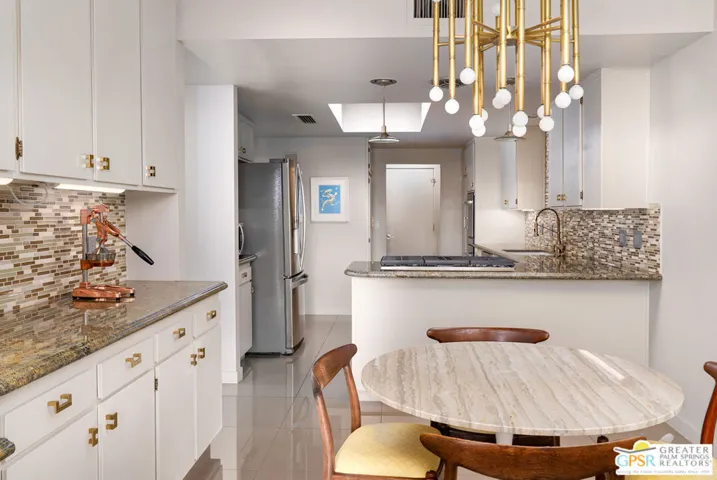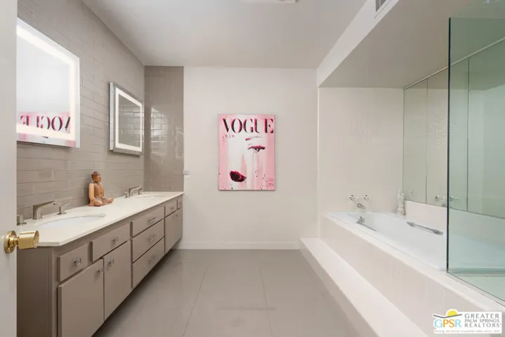 In South Palm Springs iconic Canyon Estates, this architecturally significant Charles Du Bois residence captures the best of 1970s desert modernism with clean lines, clerestory windows and seamless indoor-outdoor flow. Sited on a serene interior street, this home enjoys a north facing orientation that frames the San Jacinto mountains in full dramatic scale from the largest private patio in the community. Soft morning light, shaded afternoons, and glowing sunsets create an outdoor living experience that is unmatched in the neighborhood. Inside, the generous floor plan offers two large bedrooms, three bathrooms and a large den or office that can also become a bedroom, providing excellent flexibility for modern living. The expansive great room encompasses the living room, dining room, and a chic full-size wet bar all opening through walls of glass to the terrace, drawing the mountain views directly into the home. The kitchen and breakfast room elegantly respect the original plans of the architect and open onto the terrace as well. The primary suite is generously proportioned with an oversized bath, dressing area, multiple closets and direct access to the terrace, offering mountain views from the moment you wake up. Canyon Estates offers a true resort style living experience with an executive nine-hole golf course, fifteen pools, twelve spas, a clubhouse, fitness room and tennis courts. HOA dues of $925 per month include exterior landscape, exterior building insurance, exterior paint, pest control, premium cable and internet. The community sits just minutes from Indian Canyons and Andreas Hills, providing immediate access to some of Palm Springs most beautiful hiking trails and natural preserves while being just minutes from downtown’s shopping, dining, and entertainment. Balancing architectural pedigree, expansive outdoor living and a premier South Palm Springs location, 2324 Camino Vida is a unique and timeless offering.