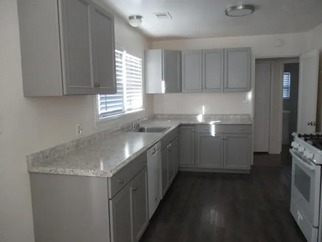 WOW! Everything is nearly new in this 2 bedroom 1 bath doll house! Nearly new central heat and central air conditioning. Fresh paint inside Hardwood floors refinished in spacious living room, hallway and both bedrooms. Newer light fixtures, newer bathroom shower/tub enclosure, newer vanity, newer toilet, newer flooring. Kitchen remodeled-newer flooring, newer cabinets, newer counter tops, all newer appliances-gas stove,microwave,newer refrigerator,new dishwasher,eat-in space in kitchen, separate laundry room, with washer/dryer backyard, patio, gated driveway-no garage. Non smokers only, one year lease minimum. Owner requires current credit report, current two months pay stubs,application. Available now-move in before Christmas!