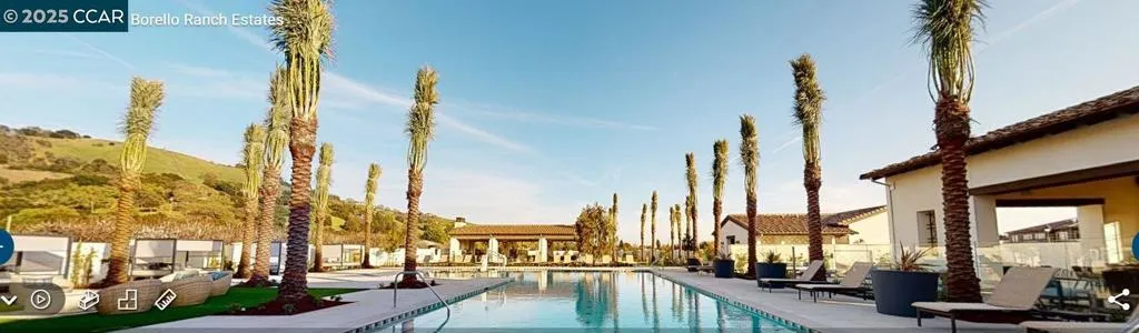 Set in a secluded location surrounded by Morgan Hill’s soft rolling hills and open space, Borello Ranch Estates is a luxury gated community. Located at the southern tip of the Silicon Valley in Morgan Hill, an abundance of parks, golf courses, walking/biking trails, recreation centers and easy access to freeway and public transportations. An expansive great room is at the heart of this home. A welcoming foyer opens onto the expansive great room with coffered ceiling, multi-slide stacked door leads to desirable luxury outdoor living space. Gourmet kitchen open to a sizable casual dining area, large center island, breakfast bar, wraparound counter, modern cabinets, upgraded JennAir stainless steel appliance package. Secluded primary bedroom suite are a generous walk-in closet, gorgeous primary bath, dual vanities, large soaking tub, luxe shower, linen storage, and private water closet. Secondary bedrooms feature roomy closets and private baths. Additional highlight include a large flex room with double French doors, 3-car garage, energy saving solar panels. Enjoy the 7,000+sqft resort-style recreation center with impressive pool, spa, barbecue facilities, bocce ball/pickleball courts and many other amenities (Photo not of actual home for marketing only, same floor plan)