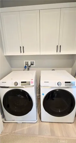 Located on the second level, the heart of the home showcases an open-concept kitchen, living, 1/4 bathroom, and dining area featuring: luxury waterproof vinyl plank flooring, quartz countertops, stainless steel Samsung appliances, including a French-door refrigerator, dishwasher, microwave, smart induction cooktop oven, washer, and dryer.