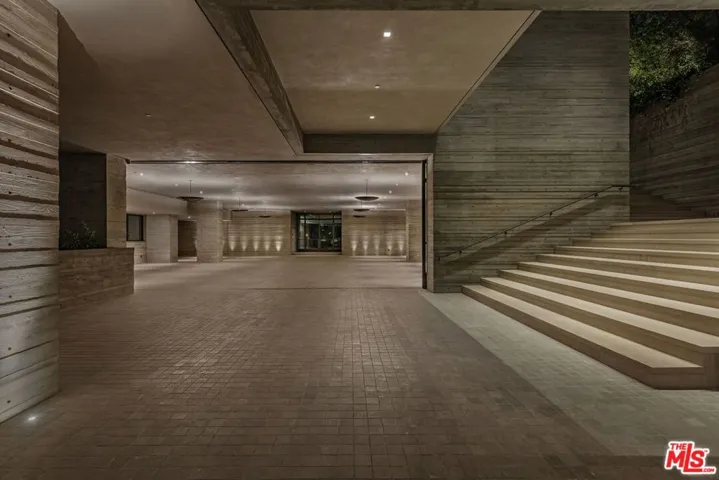 The Hollywood Hills House designed by Scott Mitchell Studio is a monumental and versatile modern villa rising out of the Hollywood Hills. The layered and terraced house – designed for living and entertaining – embraces views that span L.A.’s cityscape from east to west and out to the Pacific Ocean. This property is set on Los Angeles’s most iconic promontory, formerly owned by Howard Hughes, that extends over one acre with no neighbors on either side and 270 views of the entire city. Set at the 50-yard line of legendary hot spots Chateau Marmont, Tower Bar, and the Hollywood Bowl, the energy of the city can be seen and felt from the estate’s peaceful privacy. Additionally, the property borders state land so no building can be constructed behind it, and it has private access to hiking in the famous Runyon Canyon. The form of the house follows a rigorous commitment to rich, organic materials and light. Grand outdoor decks provide seamless indoor and outdoor living. With expansive volumes over three floors, the tranquil and rooted hillside haven exudes a sense of balance, repose and a seamless connection to the natural landscape. A secluded driveway inclines to an impressive, cobbled motor court that can accommodate 12 or more cars and is nestled under the house with far-reaching views across the city. From there the villa’s grand and wide staircase begins, following the form of the building, passing a large-scale, vertical water feature to the landscaped north terrace and walkway, where native plantings and open fires frame the principal steel window and door entry system. On entering, to the east is a luxurious study and to the west, an open living room with fireplace and views across the city that flows into the dining room and on to the kitchen and family room, where floor to ceiling glass sliding doors open seamlessly connecting indoor and outdoor and framing wide urban vistas. On the exterior, wire-brushed narrow Itauba deck boards and an elegant dark stone clad infinity pool and hot tub are flanked by a sunken fire pit and seating area. A stand-alone pool bar and lounge is connected by a covered breezeway adjacent to an outdoor seating area. Walkways and terraces continue around the house incorporating native oaks and under-storied plantings that are composed with elements of fire and water. On the upper level, the primary bedroom wing comprises not only the primary bedroom but separate bathrooms and dressing rooms, and a study that can be isolated from the rest of the suite by a discreet pocket door system. On the lower level is a recreational zone with state-of-the-art screening room, billiards room with lounge area, and a bar. These program elements are organized around a gracious distribution foyer which doubles as a secondary point of entry to the house and leads to the motor court, which can be converted into a conditioned, modern ballroom. The house was built over a 10-year period, and new codes have been created since its construction, preventing a home of this type ever being built again in the Hollywood Hills. The house is constructed with $30 million of solid poured-in-place board-formed concrete with three feet thick concrete walls, and over 100 caissons that go 100 feet deep. The hard cost of the construction is $3,500 a square foot not including the land. The project engaged JRC Group, Inc., arguably the best builder in the city. The house includes a multi-million-dollar Jada steel door package, custom millwork, and audio/visual.
