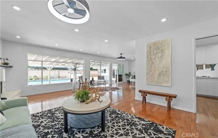 Welcome to 8701 Elmer Lane, a beautifully upgraded Garden Grove retreat featuring 3 bedrooms, 2 baths, and 1,530 sq ft of warm, inviting living space. Natural wood floors run throughout the home, complementing an open-concept layout that fills with soft, natural light. The kitchen is a standout centerpiece, thoughtfully updated with modern finishes, sleek countertops, and upgraded appliances that make cooking and entertaining effortless. Large windows and sliding doors create a seamless connection to the expansive backyard, where a sparkling oversized pool sits on a nearly quarter-acre lot—perfect for weekend lounging, gatherings, and enjoying Southern California’s endless sunshine. An attached two-car garage, oversized driveway, and a spacious grassy front yard add comfort and convenience. Ideally positioned near the 22 with quick access to the 5 and 57 freeways, the home offers an easy commute and sits close to attractions like Knott’s Berry Farm, Little Saigon’s renowned dining, and the iconic Christ Cathedral. There is also an ADU on the property, separate from the lease. With its blend of style, location, and resort-like outdoor space, this home delivers the lifestyle renters are searching for.