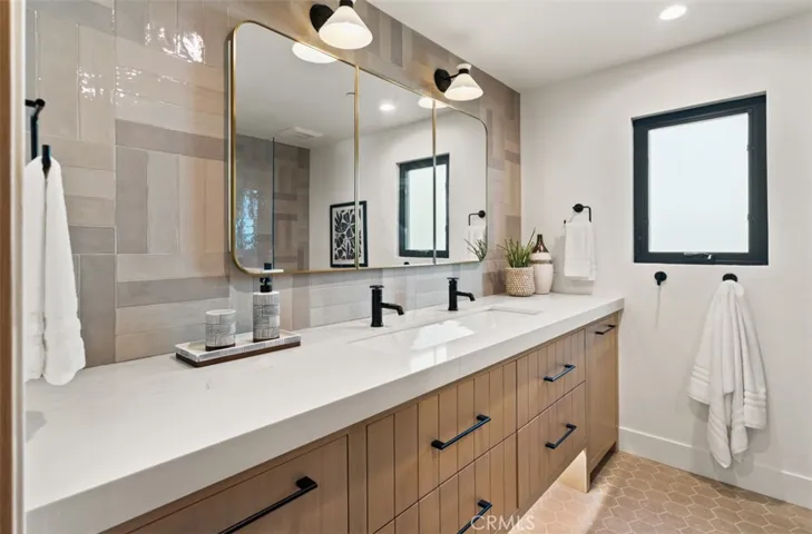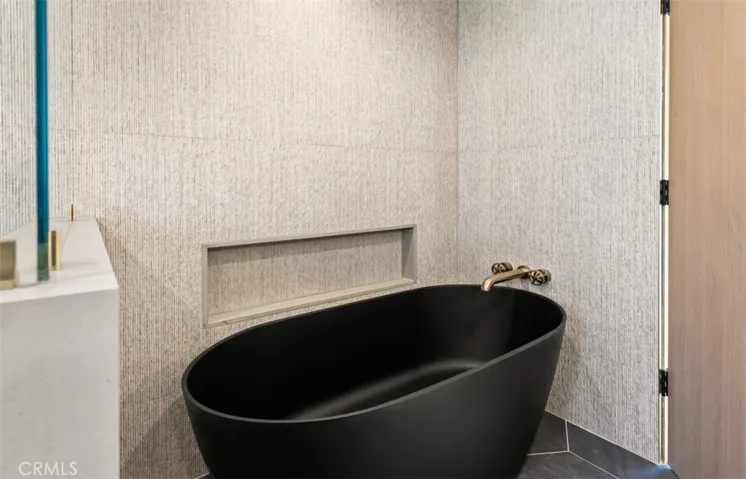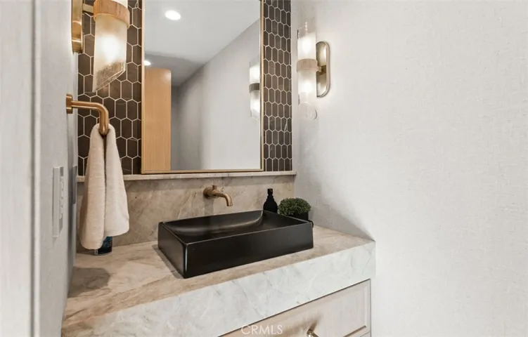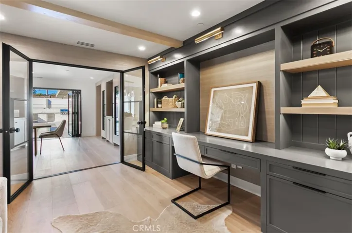 A work of modern art, 1717 Irvine Avenue emerges as a contemporary haven where architecture, nature, and luxury coexist in perfect harmony. Newly reconstructed with uncompromising craftsmanship and a bold artistic sensibility, this residence transcends traditional living. A monumental 10-foot glass pivot door introduces the home with a dramatic reveal: indoor and outdoor spaces collapse into one fluid environment shaped by elemental beauty. A waterfall wall, lush living plant installations, and a mature olive tree bring nature into the core of the home, creating an ethereal threshold that feels both tranquil and unforgettable. Inside, a sweeping open floor plan grounds the home’s modern aesthetic. The living room, wrapped in disappearing glass walls, blurs the boundaries between inside and out and flows seamlessly into the gourmet kitchen. Here, custom cabinetry, a hidden walk-in pantry, striking stone surfaces, and top-tier Thermador appliances elevate the space into a functional work of art, anchored by an oversized waterfall quartzite island. The formal dining room glows beneath a statement chandelier and is framed by dual Thermador 92-bottle wine towers—an exquisite stage for intimate dinners or grand celebrations. The entertainer’s backyard extends the modern narrative with a saltwater pool and spa illuminated by micro-LED lighting, a fully realized outdoor kitchen and BBQ, and generous lounge areas. Whether in sunlight or beneath the glow of the evening lights, the outdoor environment evokes the serenity of a private resort. The primary suite serves as a luxurious retreat—beautifully composed with a sculptural soaking tub, glass-enclosed shower, dual vanities, and a custom walk-in closet. Three additional guest bedrooms feature bespoke closets and share a spa-level bath, while one of the guest bedrooms with custom built-ins can serve as an office, which adds elegant utility to the home’s thoughtful layout. Even the garage becomes part of the design narrative, finished at showroom quality with hexagon lighting, custom cabinetry, and designer flooring. Enhanced by premium technology throughout—including Waterstone fixtures, Lutron lighting control, dual-zone HVAC, central audio, and whole-home Wi-Fi expansion—this residence is as intelligent as it is striking. Positioned near the edge of Newport Beach’s treasured Back Bay, 1717 Irvine Avenue is not merely a home but a modern compound of curated luxuries, bold design, and seamless indoor-outdoor living.