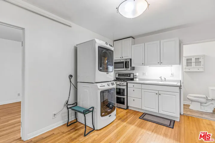 Welcome to your own tucked-away retreat in the heart of Santa Monica. This lower-level gem offers all the charm of a vintage bungalow with the practical perks of modern living. Step into a cozy living area with wood floors and a cozy vibe, then take a few steps up into the sunlit kitchen and bedroom. Yes, a multi-level layout for added character! The kitchen is crisp and white with ample cabinet storage and stainless steel appliances (brand new fridge coming soon!), plus your very own washer and dryer, so laundry days just got a whole lot easier. The bathroom has been freshly remodeled and feels sleek and contemporary, with updated tile, fixtures, and a clean design. The bedroom is spacious, peaceful, and filled with natural light, and the mirrored closet doors help make the space feel even more expansive. Out front, you’ll find leafy shared pathways and a friendly, small-community atmosphere — perfect for those who love a little privacy without feeling isolated. Located just off Ocean Park Blvd, you’ll have quick access to Santa Monica hot spots like Bob’s Market, Layla Bagels, and Clover and Marine Parks. A rare find with style, function, and personality all wrapped into one.