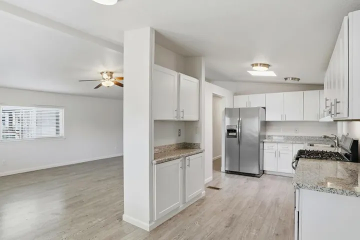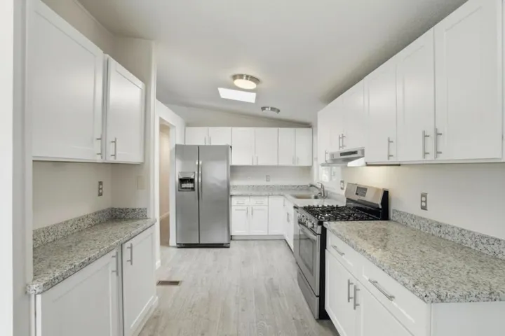 Move-in ready 3 bedroom, 2 bath home offering the perfect blend of comfort, style, and convenience. The spacious living room provides a warm, inviting atmosphere, while the open kitchen offers ample room for cooking, prepping, and entertaining. All three bedrooms are generously sized with excellent closet space, and the primary suite includes a private bathroom for added comfort. Enjoy peace of mind with extensive renovations completed in 2021, including a new roof, new flooring, updated kitchen and bathrooms, and new siding. Recent updates include new carpet, fresh interior paint, re-leveling, and all inspections completed and cleared. Located in the desirable El Dorado community, this pet-friendly neighborhood is close to major Silicon Valley tech companies, shopping, dining, and offers easy freeway access. Sunnyvale School District schools. Welcoming environment, this home truly has it all, providing the lifestyle you’ve been searching for in beautiful Sunnyvale. This is a manufactured home on leased land (not real estate); the land lease is $2,028.21 per month.