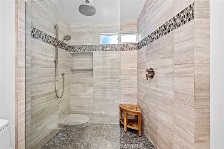 Upstairs, you’ll find two oversized bedrooms with en-suite bathrooms, including a beautifully renovated primary suite with sleek finishes and custom-built closet systems. Skylights, new flooring throughout, and matte-black door hardware add a clean, modern feel.