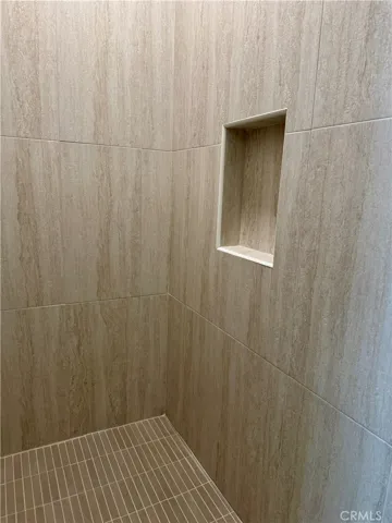 The primary bedroom includes dual mirrored closets and an updated en suite bath with quartz counters, a shaker vanity, and tiled flooring. The secondary bedroom offers good natural light and a mirrored closet. The hallway bath carries the same upgraded finishes with quartz counters, shaker cabinetry, and tiled flooring.