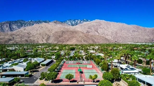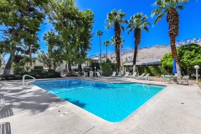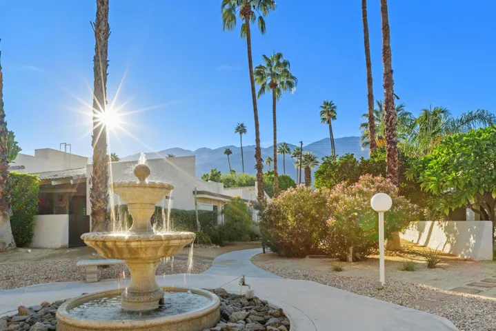 Discover resort-style living in this STUNNING corner-unit condo perfectly situated in desirable SOUTH PALM SPRINGS. This single-level, first-floor residence offers an inviting open layout with fresh paint, plantation shutters, and designer upgrades throughout. The sleek kitchen is appointed with stainless steel appliances, granite counters, and a breakfast bar, while the spacious primary suite enjoys separation from the guest rooms for ideal privacy.Step outside to your large, fenced patio, located just steps from the sparkling community pool. The gated community features lush grounds, 2 pools, spas, and tennis courts, providing the ultimate Palm Springs lifestyle.Additional features include covered assigned parking, abundant guest parking, and convenient EV charging stations. Fee simple land adds exceptional long-term value.