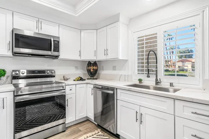 Experience resort-style living in this beautifully upgraded two-bedroom, two-bath furnished condominium setting directly on the golf course and mountain views. Thoughtfully renovated throughout, the residence offers a welcoming layout with one bedroom on the main floor and a private upstairs suite. Entry is through a charming courtyard that sets a quiet, inviting tone.Its prime location within the community provides effortless access to pools, the clubhouse, pickleball courts, and the full range of activities Oasis Country Club is known for.Residents enjoy the amenities, including 18 pools, an 18-hole executive course recognized as one of the finest in California, an 18-hole putting course, a well-appointed pro shop, fitness room, fine dining, and the popular grill room. This is a move-in-ready opportunity in a highly desirable setting–perfect for those seeking comfort, convenience, and an exceptional country club lifestyle.