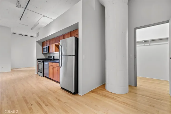 The live/work loft at Little Tokyo Lofts features a one-of-a-kind floor plan that offers defined living areas while maintaining the open loft aesthetic. Soaring ceilings, expansive windows, hardwood floors, and a remodeled kitchen, along with a large walk-in closet. The unit includes a refrigerator, washer, and dryer. Originally built in the 1920s as the historic Westinghouse Electric elevator factory, Little Tokyo Lofts was transformed into stylish condominiums in 2005. Residents enjoy resort-style amenities including a heated pool and spa, BBQ area, gym, dog run, 24-hour security, and secure parking with one assigned space plus guest parking in the garage.The community has a welcoming, small-town feel and is just a five-minute walk from the heart of Little Tokyo.