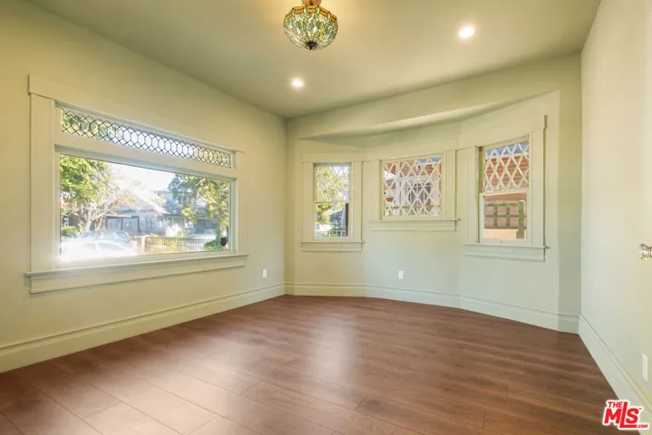 Step back in time to 1909 Los Angeles, when the city was rapidly transforming from a western outpost into a thriving metropolis. Streetcars stretched across new boulevards, early film studios were taking shape, and new residents sought beautifully crafted homes along expanding transit lines. Built during this dynamic era, this classic Craftsman home in Jefferson Park reflects the architectural ideals that defined early 20th-century Southern California living: simplicity, artistry, and a seamless connection to nature. The home features a welcoming front porch beneath a low-pitched gabled roof, an iconic Craftsman hallmark, supported by tapered columns on sturdy masonry bases. Wide eaves with exposed rafter tails, wood siding, and grouped multi-pane windows highlight the period’s commitment to hand-crafted detail. Inside, beautifully restored original woodwork, a decorative fireplace, built-in cabinetry with leaded stained glass and coffered ceilings, lend the living and dining rooms a warm, timeless elegance. The gourmet kitchen invites gatherings around a quartzite island as the home chef moves and grooves between top-of-the-line appliances. Every detail was considered from illuminated shelving and appliance garages to the farm-style sink, pot filler, pantry shelving, and abundant storage. Custom white oak cabinetry gives the space a comfortable, airy sophistication. When it’s time to unwind, follow the wainscoted hallway to a serene bedroom retreat featuring a dream walk-in closet, thoughtful lighting, and a spa-like bathroom with a dual vanity, oversized shower, and standalone tub accented by gold fixtures and a gleaming chandelier. Two additional bedrooms complement the home, along with a stylish guest bathroom located in the mudroom/laundry area with access to the low-maintenance backyard. A detached bonus structure, once likely a carriage house, now serves as a versatile office or studio with finished walls and recessed lighting. The property is fenced with gated parking for multiple vehicles, plus a driveway space. Modern upgrades include solar panels, a tankless water heater, central air and heat, a pull-down attic staircase, and a classic California basement. This 1909 Craftsman not only offers exquisite design and modern comfort but stands as a living piece of Los Angeles history…built at a pivotal moment when Jefferson Park was helping shape the city’s early identity and architectural legacy. This listing is located within the Jefferson Park Historical Preservation Overlay Zone HPOZ.