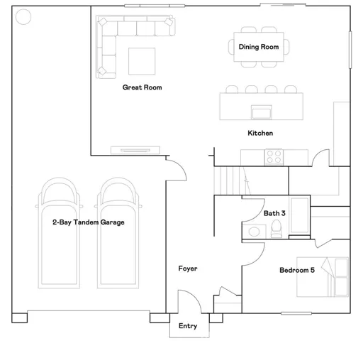 NEW CONSTRUCTION! This new two-story home features an inviting open-concept layout on the first floor, blending the kitchen, living and dining areas for simple transitions and multitasking, and a bedroom and full bathroom are secluded off the foyer. On the second floor, a versatile loft provides a shared living space easily accessible from three bedrooms and a luxe owner’s suite, complete with a full bathroom and walk-in closet. The kitchen features new caledonia granite counters and white cabinetry.