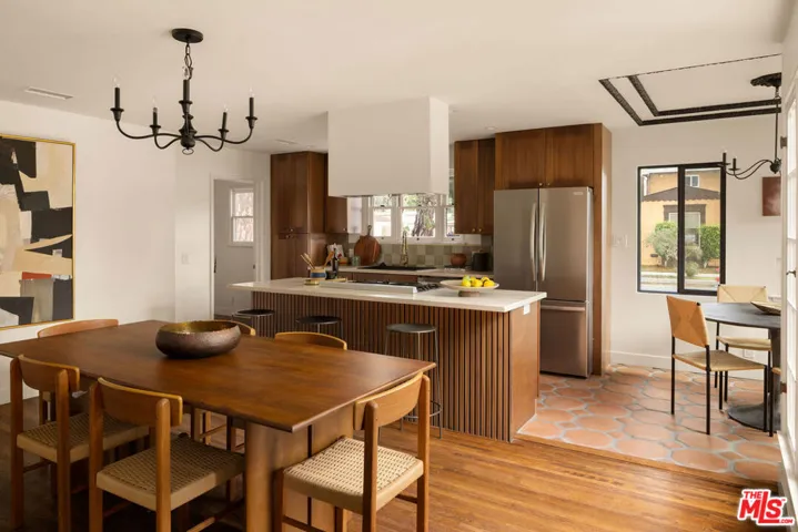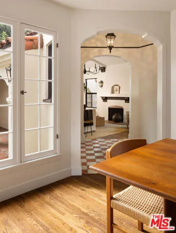 Tucked on a peaceful corner lot in iconic Leimert Park, this beautifully restored Spanish Revival home greets you with a romantic courtyard shaded by a graceful olive tree. Step inside to a sun-soaked living room featuring original hand-troweled plasterwork, soaring 9-foot beamed ceilings, a wet bar, classic moldings, a cozy fireplace, and a stunning picture window. Rich oak hardwood floors flow throughout, elevating every space with timeless warmth. The fully updated chef’s kitchen blends modern convenience with undeniable charm, complete with a delightful breakfast nook and ceiling details worthy of an art gallery. The period character continues into the laundry room, where thoughtful vintage touches like a built-in drying rack, ironing board, and a nostalgic milk door make this home truly special.You’ll find three generously sized bedrooms, including two en-suite retreats that open to the backyard deck. Out back, enjoy an outdoor kitchen and a private yard designed for relaxation and effortless entertaining. It truly feels like a personal getaway.A detached two-car garage offers even more flexibility. With thoughtful upgrades throughout including a new roof, HVAC, updated plumbing, new electrical wiring, and a 200-amp panel, this home is ready to welcome its next chapter. All of this is just minutes from Kenneth Hahn Park, the Culver City Stairs, and beloved LA gems like Post & Beam, Somerville and Jon & Vinny’s. Your dream home is here, make it yours.