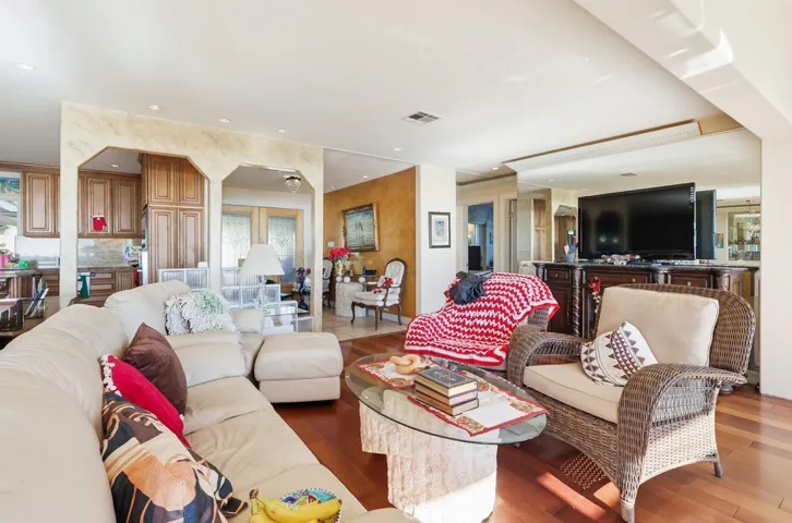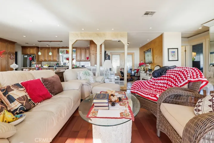 Exciting opportunity to own in the highly desirable Palos Verdes Shores! Enjoy panoramic ocean, Catalina Island & hillside views from this amazing turnkey 3-bedroom, 2-bathroom 2040sf home residing on a large lot & a quiet street. Back deck spans the length of the home & offers multiple ocean view seating areas including a covered Gazebo & a covered lounge area. Living room, dining room, kitchen, foyer & 2 bedrooms also boast stunning ocean, Catalina Island & sunset views! Open concept kitchen features Granite countertops, wood cabinets, island, 4-seat breakfast bar, gas stove, microwave, oven, dual sinks, stainless steel refrigerator, dishwasher, recessed lights & easy-care tile floors. Light & bright open concept great room features fantastic living room & dining area boasting high ceilings, sliding glass doors, French doors, recessed lights, built-in cabinets, easy care floors & stunning ocean, Catalina Island & sunset views. First primary bedroom offers amazing ocean, Catalina & sunset views while lying in bed, wood floors, walk-in closet & bathroom ensuite equipped w/tile floors, walk-in shower, dual sinks, linen closet & extra storage cabinets. Second bedroom currently being used as a media room & features crown molding, wood floors & glass doors leading to the deck that captures stunning ocean, Catalina Island & sunset views. Guest bathroom features single sink vanity, walk-in shower & tile floors. Third bedroom can be used as a second primary bedroom, home gym, or office, & offers wood floors, mirrored closet doors & attached bathroom w/walk-in shower. Laundry room inside home features washer & dryer plus cabinetry for extra storage. 3 storage sheds on this large lot makes this the perfect place to downsize to! Exterior offers river rock masonry siding, side-by-side 4 car covered parking, multiple gardening areas, gated dog run & areas for pets to run freely, low maintenance front yard & vinyl fencing. NO Property Taxes & Lower than Average Space Fee! Palos Verdes Shores is a gated community w/hiking, private Golf Course, heated pool, hot tub, carwash, sauna, lit tennis & pickleball courts, RV & boat parking, 2 dog parks, gardens, rec. center, salon & spa, gym, movie theater, billiards, 2 lounges, banquet hall, restaurant-like kitchen, library, meeting room, security, management & maintenance. Community activities include water aerobics, dance, stretch, yoga, tai chi & hula + more. Located near restaurants, malls, stores, banks, medical & freeways.