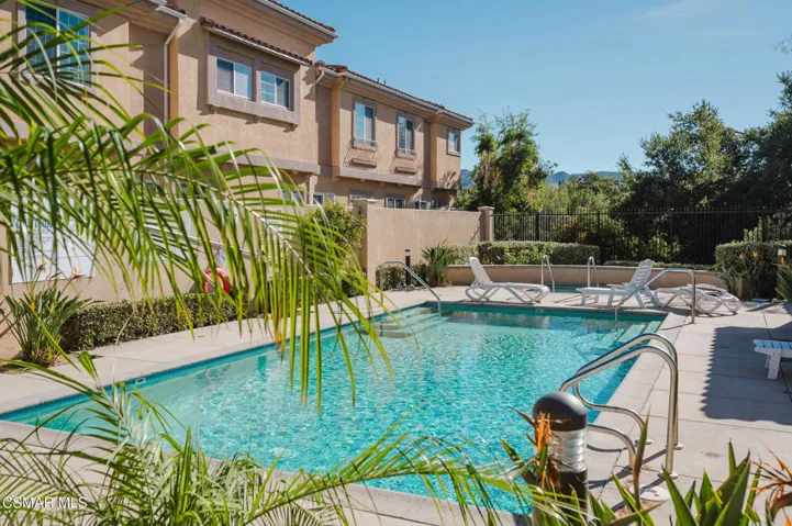 Nice well maintained light and bright 3 bedroom and 2.5 bath home with an open concept floor plan. Spacious kitchen with granite counter tops and dining area leads to living area with a raised hearth cozy fireplace. Sliding door leads to the back patio. Laminate flooring throughout upper level of the home and tile flooring on the bottom level of the home. Additional features include an upstairs laundry room, skylight, security system, double sink vanities in the primary bath with separate tub and shower, and a large walk in closet in the primary bedroom. Enjoy the refreshing community pool and spa too! Close to restaurants, schools, and shopping.