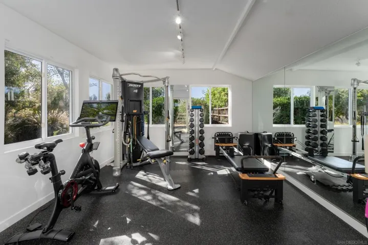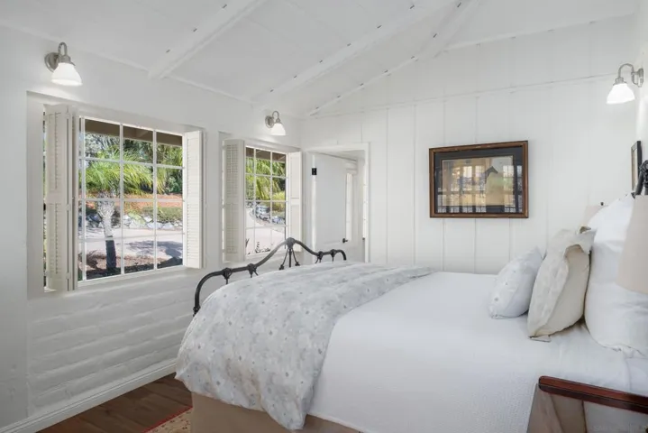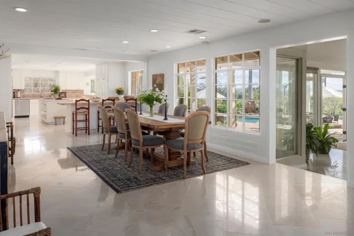 Perched on a desirable hilltop on the coveted West Side of the Covenant, this stunning single-level ranch-style estate is a private sanctuary set on 3.6 lush acres. A long private driveway and graceful circular drive introduce the home with an elegant and serene arrival, offering unparalleled privacy and sweeping views. The light-filled main residence features 4 spacious en-suite bedrooms, 4.5 bathrooms, and approximately 4,759 sq. t. of refined living space designed for both grand entertaining and intimate everyday living. Highlights include a gourmet kitchen that opens seamlessly to the sparkling in-ground pool and expansive patios, a generous living room built for gatherings, a sunroom bathed in natural light, a dedicated office, and indulgent master suite you won’t want to leave. A charming detached 2-bedroom, 2-bathroom guest house with full kitchen is perfect for family or guests. Outdoor living is elevated with a detached gym, citrus groves, raised garden boxes, and plenty of room to roam. Residents enjoy direct access to 60+ miles of pristine equestrian trails, the highly acclaimed Roger Rowe School (K-8), and the community’s legendary lifestyle. Additional features: Two-car garage with EV charging. Owner pays electric, high-speed internet, and HOA fees – an exceptional value in the Covenant. Experience luxury living in a peaceful, timeless setting designed for comfort, elegance, and the ultimate Rancho Santa Fe lifestyle.