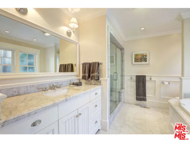 Nestled at the end of a coveted cul-de-sac in the heart of Brentwood, this picturesque custom Cape Cod, completed in 2007, combines timeless elegance with modern comfort and privacy. Filled with natural light and thoughtful details throughout, the home is designed for both everyday living and entertaining. The lower level features a comfortable media/family room with French doors opening to a stone patio and lush lawn, perfect for outdoor gatherings or quiet relaxation. This level also includes a guest suite, a library/office, and a convenient laundry room. On the main level, formal living and dining rooms provide inviting spaces for entertaining, while French doors lead to an upper porch ideal for al fresco dining. The gourmet kitchen is appointed with granite countertops, ample prep space, and modern appliances, serving as a central hub for family meals and gatherings. A powder room and an additional bedroom complete this level. The top level is dedicated to a luxurious primary suite with walk-in closets, a hotel-quality ensuite bathroom, and a versatile dressing room or gym. Two additional bedrooms share a full bath and offer flexible spaces for guests, or working from home. Additional highlights include rich hardwood floors, crown molding, wainscoting, beadboard accents, and recessed lighting throughout. Every detail reflects sophistication and quality craftsmanship. Located in the heart of Brentwood, this elegant home offers seamless access to premier dining, shopping, and entertainment, while providing a serene retreat with indoor-outdoor spaces designed for both living and entertaining. Come check it out today!