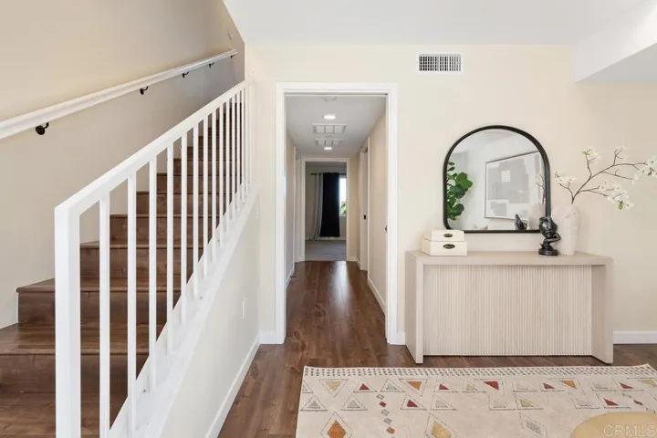 Perfectly positioned in one of Point Loma’s most desirable coastal corridors—with effortless access to the ocean, major freeways, and downtown San Diego—this modern 2-bedroom, 2.5-bath townhome delivers the ideal blend of style, comfort, and convenience. Offering 1,554 square feet of thoughtfully designed living space, the home is just minutes from the beach and all the vibrant amenities of Ocean Beach and Point Loma. The entry level features a welcoming family room, a spacious bedroom, a full bathroom, and a dedicated laundry area—an ideal layout for guests or a private home office. The second floor is the heart of the home, showcasing an open concept living area and an expansive kitchen equipped with stainless steel appliances, quartz countertops, and a large kitchen island. Retreat to the third-floor primary suite, where abundant natural light, a generous walk-in closet, and an ensuite bathroom with dual vanities await. Step out onto the large private deck and enjoy sweeping views. Additional features include central AC, two covered garage spaces wired for EV charging, and a private storage unit. Built in 2019, Upper Voltaire is a gated community of 28 residences with exceptional walkability to restaurants, coffee shops, and nightlife. Close to iconic San Diego destinations such as Sunset Cliffs and Liberty Station—and only minutes to downtown—4100 Voltaire Street offers a rare opportunity to enjoy coastal living without compromise.