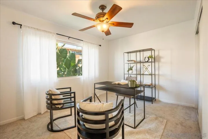 Are you looking to live in the heart of San Diego? This 2 bedroom, 2 bathroom condo in San Carlos may be exactly what you are looking for. As a corner unit on the upper floor with no rear neighbor this home allows for privacy and a view! Your new home has been newly painted, new carpet, new window coverings, new shower fixtures, modern light up vanity mirrors in both bathrooms, refinished primary shower, newer secondary bathtub/shower, newer windows and sliding patio doors with reflective tint to keep the heat out. The community offers a pool, fitness center and bbq area.