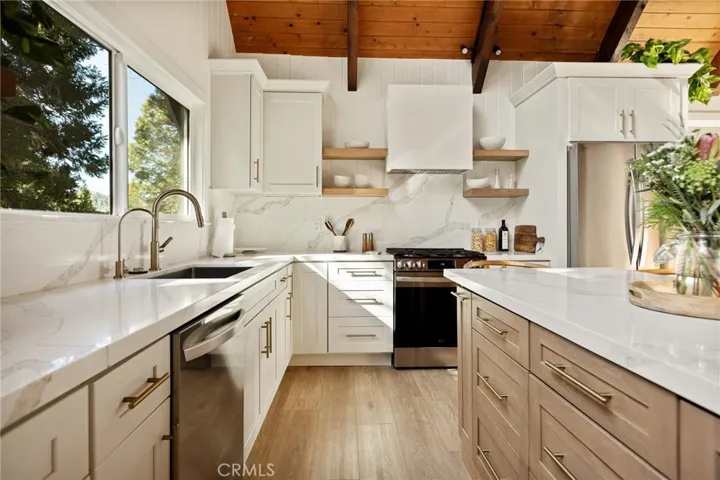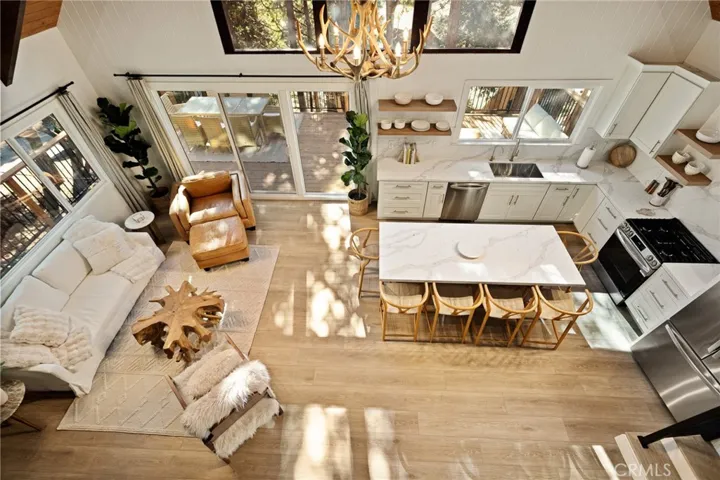This Enchanting Home Sitting in the Forest is ABSOLUTELY STUNNING & Just Got a Complete Re-do! Nestled in the Trees with Soooo Much Privacy… No Expense Was Spared!! The Setting is So Dreamy!!! Walk Down the Trails with the Lush Landscaping All Around… When You Step Through the Front Door, The Grand Entryway Leads you Down the Hall to the Great Open Living Area with HUGE WINDOWS That Soar Up to the GORGEOUS BEAMED CEILINGS! You Will Love the Super Cozy Living Room with Woodburning Fireplace and Oversized Brand New Redwood Deck! Enjoy the Fresh Mountain Air and Tranquility While Sitting Under the Pines & Cedars All Around! The Kitchen Has an Amazing Island with Seating for Everyone Plus a Fantastic Coffee Bar and Pantry! And Its All BRAND NEW!!! 3 Bedrooms on the Main Level with a Brand New Bathroom. Upstairs from the Kitchen is a Private Suite Tucked Away All to Itself with High Ceilings & Custom Woodwork Throughout! The Primary Suite is on the Lowest Level with Private En Suite Bath. Just Outside is the Comfy Den with Another Woodburning Fireplace and Slider Going Out to the Lower Deck – Perfect Space for a HOT TUB!! Guest Bathroom in the Hallway with Laundry & Access to the Garage. NEW AC, NEW WINDOWS, NEW DECKING! ALL NEW KITCHEN, BATHS, FLOORING, PAINT! Furnishings are Negotiable and The RV Parking Has Space for the Boat AND the RV!!! OVERSIZED GARAGE too! Just 3-Minute Drive to the Lakes Edge and to Blue Jay Village! 2 More Minutes to Lake Arrowhead Village! Spend the Day Boating & Fishing or Head on Over to Skypark for Some Outdoor Fun! During Winter Months, Snow Valley Ski Resort is Just 20 Minutes Away for a Day of Snowboarding!