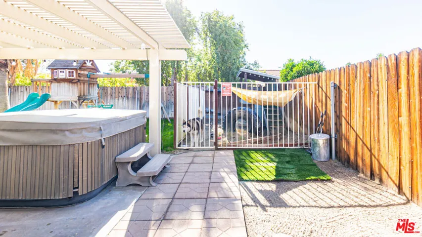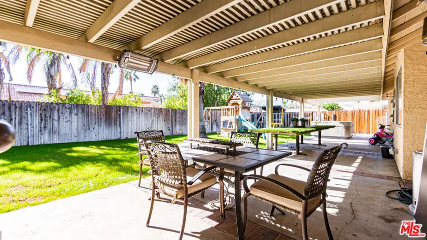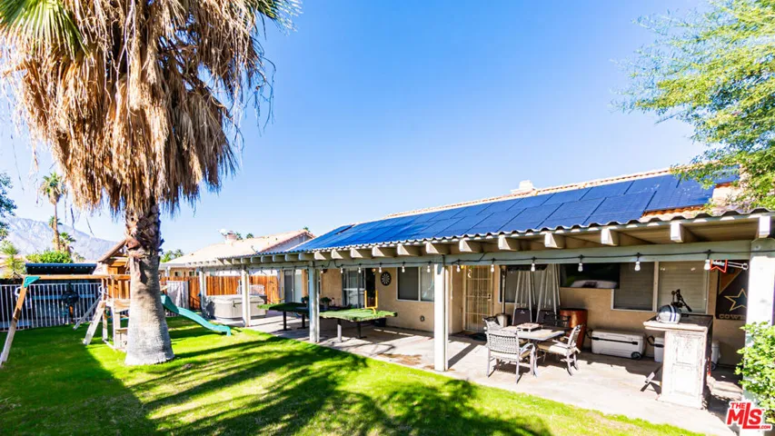 Beautiful 3-Bedroom Home in Quiet North Cathedral City Neighborhood! Located 1 block from Century Park, this home has upgrades & soaring vaulted ceilings throughout. Living room w/ custom rock fireplace/mantle & ceiling fan. Dining area w/ chandelier. Spacious kitchen w/ tile countertops & dine-in bar. Adjacent den/playroom area. Oversized Master Bedroom retreat w/ built-in entertainment center, custom fireplace, & access to backyard. All bedrooms feature wooden shutters. Private backyard area w/ large Alumawood covered patio, children’s playset, & grassy area – perfect for entertaining! 2-car garage w/ 220 EV charger & plenty of driveway parking. Garage interior has been fully finished w/ drywall, insulation, custom cabinetry, LED lighting, & mini-split HVAC system. Laundry room w/ storage. Fully paid off 14,000 kw Solar system w/ LG panels & new 200-amp breaker panel – NO MORE power bills to pay! Navien tankless water heater. Newer high-efficiency HVAC system. Just minutes to the best shopping, dining, & entertainment the area has to offer. A unique opportunity to buy a home that has all the big upgrades already done & paid for!
