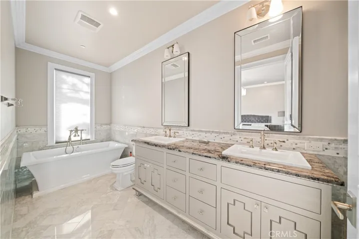 Welcome to this exquisite luxury residence located in Arcadia’s prestigious Highland Oaks neighborhood. Designed by renowned architect Robert Tong and constructed by Bowden Development Inc. this stunning two-story estate exemplifies timeless elegance and exceptional craftsmanship. The home features 4 full-suite bedrooms and 4.5 bathrooms, all uniquely designed for comfort and luxury. Each additional bedroom is enhanced with its own en-suite bathroom, with the primary suite boasting its own wet bar and private lounge. While this estate was thoughtfully constructed for privacy and convenience, it also offers grandness and elegance. The expansive open-concept living areas flow seamlessly across the main level, creating a welcoming environment for gatherings of all sizes. The chef-inspired kitchen, complete with a separate wok kitchen, is designed with high-end finishes and appliances to meet the needs of culinary enthusiasts and entertainers alike. The home is equipped with an advanced iPad-integrated automation system, providing intuitive control over all major functions of this remarkable estate. The outdoor living area is equally impressive, offering a custom grilling station, built-in media center, and covered patio designed for year-round enjoyment. Nestled along a serene tree-lined at the foothills of the San Gabriel Mountains, this property provides an exceptional blend of natural beauty and designed for modern living. Located within the award-winning Highland Oaks school district and the natural beauty of one of Arcadia’s most sought-after communities. This Arcadia residence represents a rare opportunity to experience luxury living in an area known for its tranquility, prominent district, and enduring appeal.