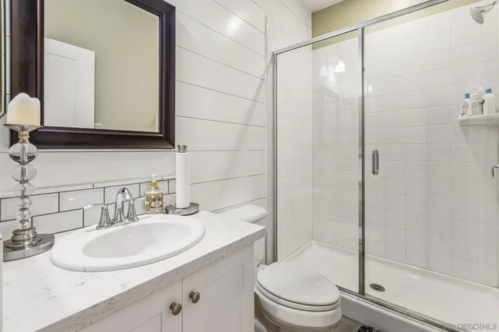 Welcome to this charming and highly upgraded residence in the desirable Harmony Grove Village, perfectly designed for modern living. The heart of the home is a chef-inspired kitchen featuring quartz counters, abundant cabinet and counter space, and a huge central island with comfortable bar seating, seamlessly opening to a sun-drenched, large great room boasting vaulted ceilings and fantastic natural light. The main living areas showcase beautiful hardwood flooring, adding warmth and elegance throughout. Practicality meets convenience with a desirable downstairs bedroom and full bath, ideal for guests or multi-generational living. Upstairs, the oversized master suite provides a serene retreat, complete with an en suite bathroom featuring his-and-hers sinks, a spacious step-in shower, and a private commode area. A major highlight is the functional loft area that has been thoughtfully finished to create a small additional room, offering flexibility as a potential fourth bedroom, home office, or gym. The home is future-ready and energy-efficient, equipped with a solar system and a Tesla Powerwall battery. Further amenities include an upstairs laundry room and an attached two-car garage. The fenced backyard is a true low-maintenance oasis, designed for outdoor enjoyment with a fantastic hangout area featuring a firepit and pavers, alongside a pet and kid-friendly turf area. Living in Harmony Grove Village grants access to exceptional community amenities, including multiple parks, a heated community pool, a dog park, and an extensive network of walking and hiking trails.