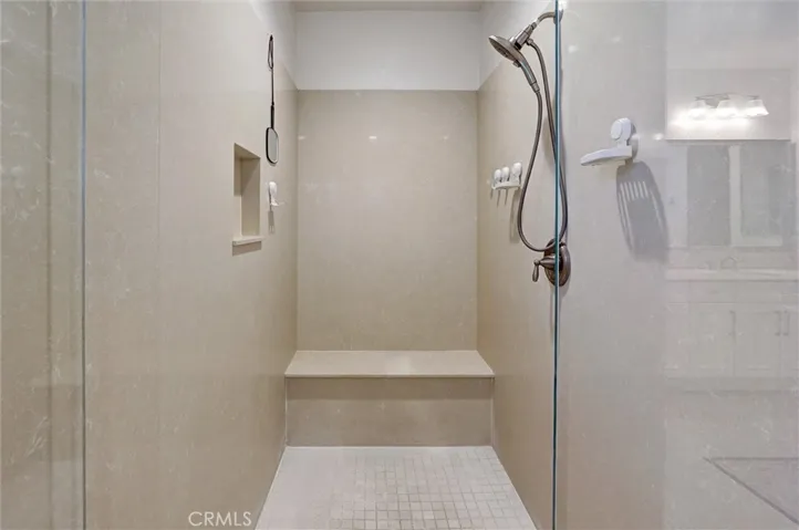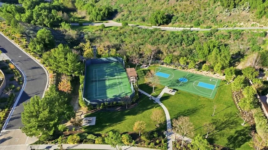 Outdoor living is equally impressive. Three tranquil water features are located in the front yard, atrium, and backyard sitting area complete with a fire pit. The backyard is an entertainer’s dream, showcasing travertine pavers, a side paver walkways on both sides of the home with circular detail on one side, and a pathway with steps leading to an elevated custom seating area with city views. A custom awning imported from Germany shades the main travertine sitting area for year-round enjoyment.