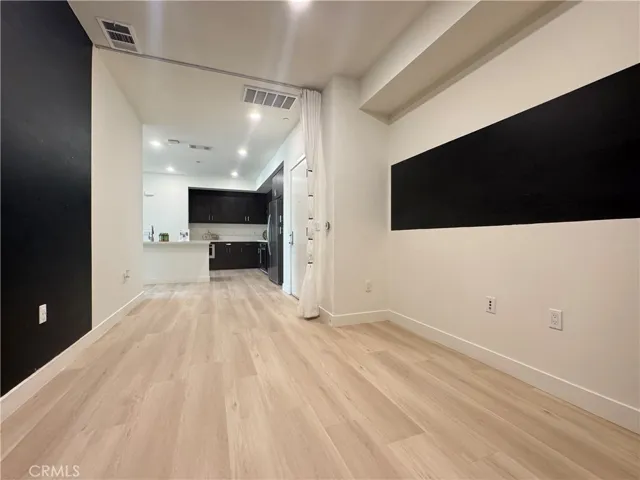 Easy to show! New flooring and white wood shutters has 2 parking spots. This 1-bedroom 1-den 1.5-bath single-story condo includes a living area featuring a great room, dining room, outdoor deck, and gourmet kitchen with plenty of counter space. The master suite comes with en-suite bathroom, a walk-in closet, laundry cabinet. The den can house a full-size bed and a desk. The condo currently has a refrigerator, a washer, and a dryer. Membership to the community state-of-the-art fitness center is included. The quiet unit is conveniently located near the elevator and its two (2) assigned parking spaces are closest to the elevator in the building’s secure garage. Close to Fwy 405, Jamboree. Short drive to UCI, Irvine Spectrum Center, Fashion Island, South Coast Plaza.