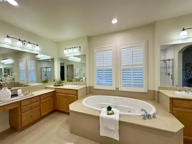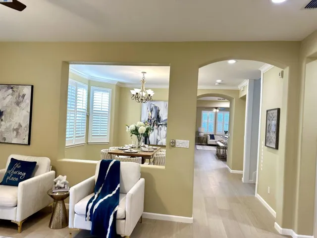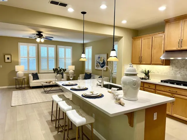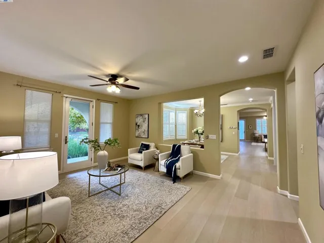 2AX Model facing SW, only 5 exists in this Bethany Village charming neighborhood. Located in top rated schools, walk to Bethany Elementary and just a little over a mile to Mountain House High School. Delta College is near-by. Wonderful open floor plan, lots of light & space. Bedroom and full bath in the lower level, luxurious primary BR, jacuzzi tub in master bath, huge walk-in closet. All brand new LV Flooring throughout, separate laundry room. Formal Living, Dining and Family Room, gourmet kitchen, quartz counter top with stainless steel appliances, large pantry. Ceiling LED lights. Window plantation blinds. Convenient 3-car side by side on this corner lot of 9,562 sq. ft with mature landscaping and facing Southeast on Las Brisas, Southwest on Caballo St. Just move-in and have the pride to own this beautiful home.