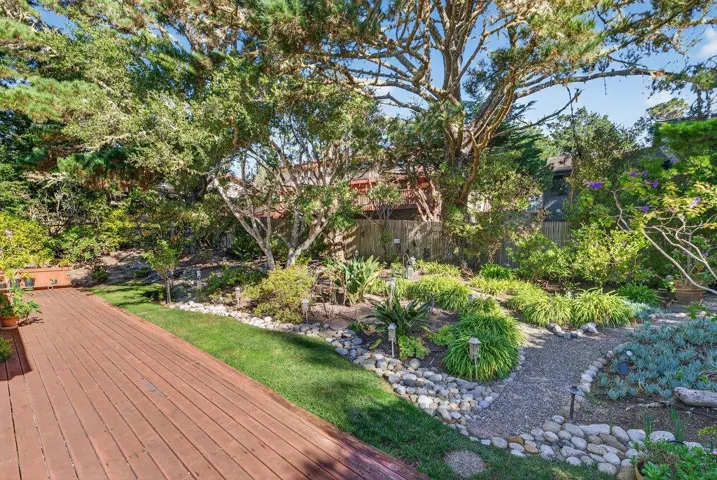 Discover this exceptional architectural residence in the heart of Pebble Beach, offering 2,485 sq ft of inspired living space with 3 bedrooms and 3.5 bathrooms. Designed around light, volume, and clean modern lines, this multi-level home features dramatic two-story ceilings, expansive skylights, and walls of glass that bring the surrounding forest indoors. The main living area centers on a striking marble fireplace and opens to a large wraparound deck for seamless indooroutdoor living. A built-in wet bar with floating glass shelves and custom stained-glass windows adds a sophisticated touch. A floating mezzanine and upper loft provide flexible space for an office, studio, or lounge overlooking the great room. All three bedrooms are spacious with vaulted ceilings and abundant natural light. Sliding glass doors from the primary and secondary bedrooms offer direct access to private outdoor areas. The generous kitchen layout provides great scale and storage, ready for personal updates. Outdoors, enjoy a landscaped garden with stone paths, mature trees, succulents, and multiple seating areascreating a peaceful retreat. Minutes from The Lodge, world-class golf, and coastal beauty, this distinctive property offers exceptional potential in a prime Pebble Beach location.