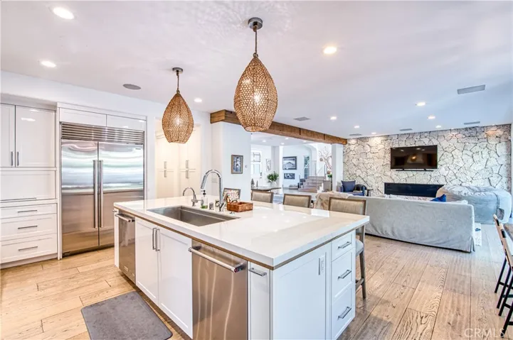 Must see beautiful home in the prestigious guard gated community of Bonita Canyon. This Masterfully renovated light filled home has five bedrooms, 5 bathrooms, and a specious well designed open concept floor plan. The wow factor entry leads to a living room with high ceilings, large dining area, inviting family room and top of the line kitchen with high efficiency appliances, custom cabinetry, and large center island perfect for entertaining. The home embraces indoor outdoor living with fully retractable bifold doors that open to the outdoor living space fully equipped with a built in barbecue, spa and fireplace. In addition, the main level also has a first floor bedroom with an ensuite bath, an office area with built ins, a powder room, and breakfast nook. The Upper living space includes the expansive primary suite with a newly completed designer bath and large display perfect walk in designer closet. There are three additional bedrooms, two bathrooms, and a large secondary family room perfect for movie or game night, or just hanging out.. Other notable features include a repaid solar panel system, dual zoned air conditioning and heating and garage parking for three cars. Bonita Canyon is a prominent gated community in Newport Beach. Home ownership includes 24-hour guard gated security and access to the community pool, playground facilities, walking paths, and tennis court.