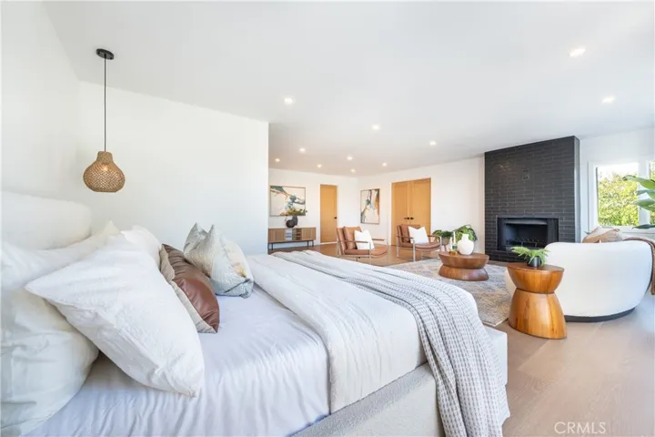 This reimagined Spanish Transitional located on nearly half an acre within the Lanai School District is a stunning fusion of architectural soul and modern sophistication. Double doors unveil a dramatic formal entry and a luminous open floor plan anchored by wide-plank wood floors, bespoke built-in niches, and striking beamed and cathedral ceilings. The living room is crowned by a stone-encased fireplace and framed by walls of glass that reveal an intimate patio/courtyard ideal for relaxed luxury. Designed with both artistry and functionality in mind, the chef’s center-island kitchen boasts generous seating and storage, stone counters, soft-close cabinetry, and a suite of premium appliances, including a Wolf 6-burner range and stove. The adjoining family room, complete with a refined wet bar and wine fridge, elevates everyday living and effortless entertaining. The formal dining room showcases designer pendant lighting, plantation shutters, and tranquil views of surrounding greenery, an elegant setting for gatherings. The home’s private spaces are nothing short of exceptional, with five en-suite bedrooms plus a chic powder room and secondary bedrooms featuring pro-organized closets. The luxurious primary suite serves as a serene sanctuary, featuring a cozy fireplace, dual sets of French doors opening to a secluded balcony, and an expansive, professionally curated walk-in closet with its own wine fridge. The spa-inspired bath exudes resort-level indulgence with a soaking tub, dual-person rain shower with built-in seating, dual vanities, privacy toilet, and an additional private balcony. A convenient upstairs laundry room enhances day-to-day ease. The expansive, sprawling backyard is the star of the show which unfolds as a true California resort oasis complete with a pickleball court, gated pool and spa, pergola-covered lounge, brick-lined patios, and lush grassy areas crafted for both relaxation and recreation. A rare offering where timeless design, elevated amenities, and the quintessential indoor/outdoor CA lifestyle converge in perfect harmony.