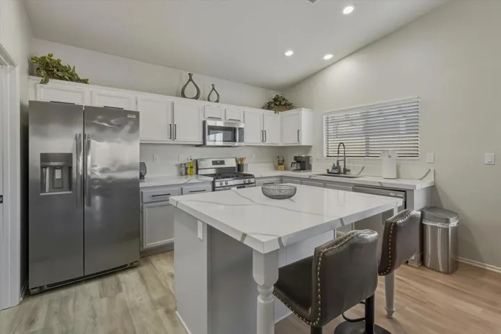 Welcome to this renovated desert sanctuary nestled in North Indio, with no HOA fees, perfectly positioned just moments away from world renowned events. This exquisitely renovated 4 bedroom, 3 bathroom residence comes fully furnished and presents an exceptional dual opportunity. Whether you envision a tranquil personal retreat for your own enjoyment or a flexible rental investment (short term, seasonal or long term). The interiors greet you with a meticulously chosen modern upgrades, including resilient luxury vinyl flooring that combines aesthetic appeal with robust durability and gleaming quartz countertops. The expansive backyard features a pristine Pebble-Tec pool and spa, a putting green and a multitude of inviting seating arrangements. The grounds boast low-maintenance artificial turf alongside lush green spaces perfect for lounging and ample room for an RV with electrical hookup already in place for extra guests. A generously sized covered patio provides essential shade and comfort during the desert’s warm days, ensuring you and your guest can relax in style.