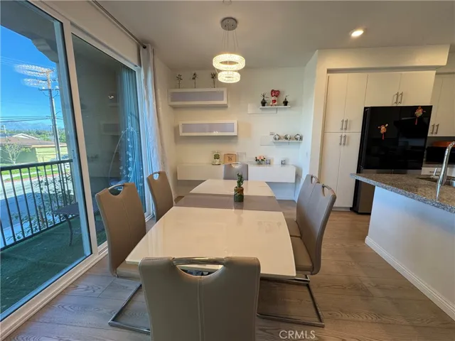 Welcome to this nearly new townhome-style condominium located in the heart of La Puente. Built in 2023, this home features no front neighbors, offering excellent privacy and abundant natural light, all wrapped in a modern and stylish design. The main level includes a sleek, contemporary kitchen equipped with stainless steel appliances, quartz countertops, and a center island. It flows seamlessly into the dining area and a private balcony—perfect for entertaining guests. The adjacent living room features recessed lighting, and the entire home has been upgraded with premium laminate wood flooring, creating a warm and inviting atmosphere. Upstairs, you’ll find a spacious primary suite complete with dual sinks, a private toilet room, a large walk-in shower, and a walk-in closet. The secondary bedroom also comes with its own ¾ bathroom, providing comfort and added privacy.