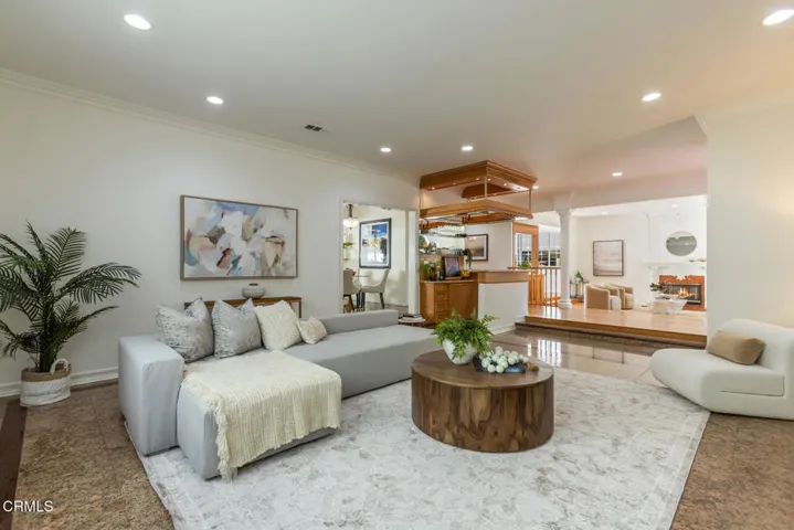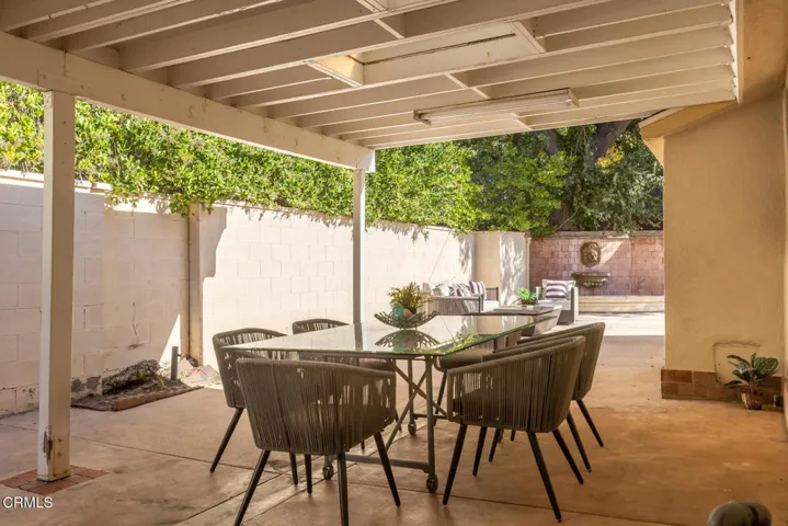 Located in the heart of La Canada Flintridge, this inviting single-level home blends generous living spaces with timeless comfort. The impressive entry opens into a large family room appointed with a stylish built-in bar and sleek granite flooring, setting the tone for relaxed living. Just beyond, the formal living room showcases impressive high ceilings, a classic fireplace, and warm hardwood floors, creating an inviting environment for gatherings of any size.The formal dining room provides a warm and elegant setting for hosting dinners. The large, gourmet kitchen offers a functional and open workspace, complete with a center island and stainless- steel appliances, granite countertops, and matching granite floors. Adjacent to the kitchen, a bright breakfast room flows effortlessly to a covered side patio, creating a seamless indoor-outdoor dining experience.All three bedrooms are generously sized and include their own en-suite bathrooms, ensuring comfort and privacy throughout. Step outside to the serene backyard, where a sparkling pool and inviting spa create a peaceful retreat for year-round enjoyment. Enjoy close proximity to award-winning La Canada Schools, JPL, local shopping and dining, freeway access, and more.