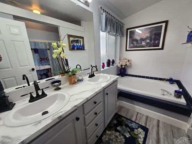 ALL AGES! Gorgeous home with an attached two-car garage in the highly sought after Woodcreek Estates, an all-age community. Step into this beautiful 3 bedroom, 2 bath home that perfectly blends comfort and elegance. Featuring soaring high ceilings and a stunning bay window. The living space is bathed in natural light, creating an inviting and spacious atmosphere; in addition, the fireplace is the center of attention in this room. The open floor plan flows seamlessly from the kitchen to the dining area and to the living room, where French doors lead the way to the patio, where you can enjoy the breathtaking views. This space is perfect for relaxing and/or entertaining. The large laundry room provides ample storage and convenience, while the attached 2-car garage offers easy access and additional space. Don’t miss this rare opportunity to own a home that offers both style and functionality. 2 car garage with direct access to the home plus an additional driveway. LAZ3924.