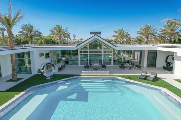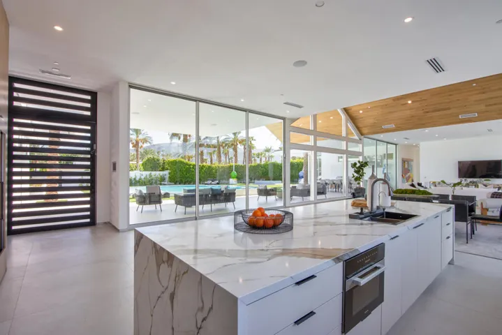 Experience the pinnacle of luxury living in the heart of Makena–an exclusive retreat designed for those who demand excellence. This striking new estate, inspired by legendary architect Joseph Eichler, offers an unrivaled blend of style, innovation, and privacy, perfect for high-profile clients seeking both comfort and grandeur. Imagine entertaining in an 18-foot-ceiling open-concept living space with breathtaking mountain views, featuring a mesmerizing book-matched porcelain fireplace and a striking wood-paneled A-frame roofline that exudes sophistication. The chef’s kitchen, with full white oak cabinetry, a 20-foot island, and cutting-edge Miele appliances, is ideal for hosting and creating culinary masterpieces. Seamlessly integrated with cutting-edge Alexa-based smart home technology, control your lighting, AV, and climate with a single touch–perfect for the modern lifestyle of sophistication. The luxurious primary suite features floor-to-ceiling glass overlooking your private pool and spa, complemented by a spa-inspired bathroom with a double walk-in shower, freestanding tub, and dry sauna.Set on over half an acre, your exclusive outdoor oasis includes an octagon-shaped infinity pool, a spa retreat, an outdoor kitchen with a 20-foot island, and multiple fire features–all designed for unforgettable gatherings or private relaxation. This isn’t just a home–it’s a statement of success, artistry, and impeccable taste. Elevate your lifestyle with this extraordinary desert sanctuary. For discerning individuals who value privacy, style, and innovation–this is your next masterpiece. Schedule your private tour today and step into a world where luxury knows no limits.