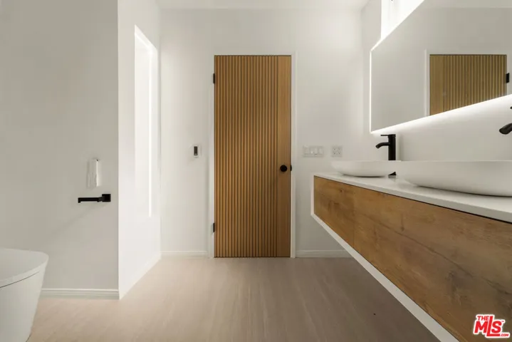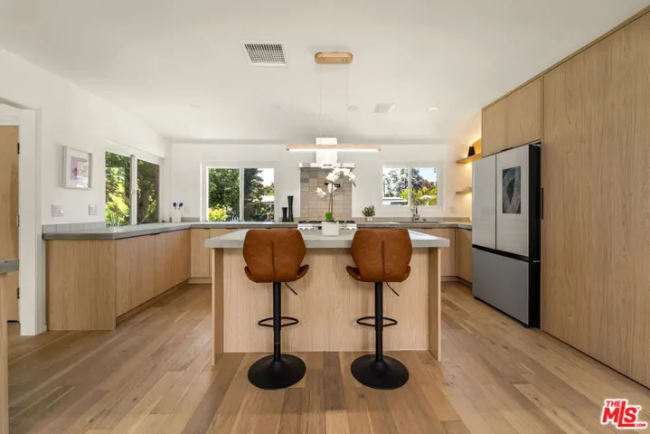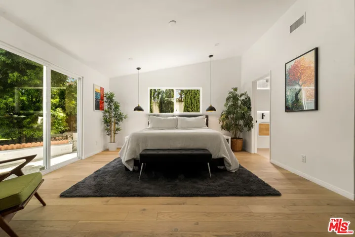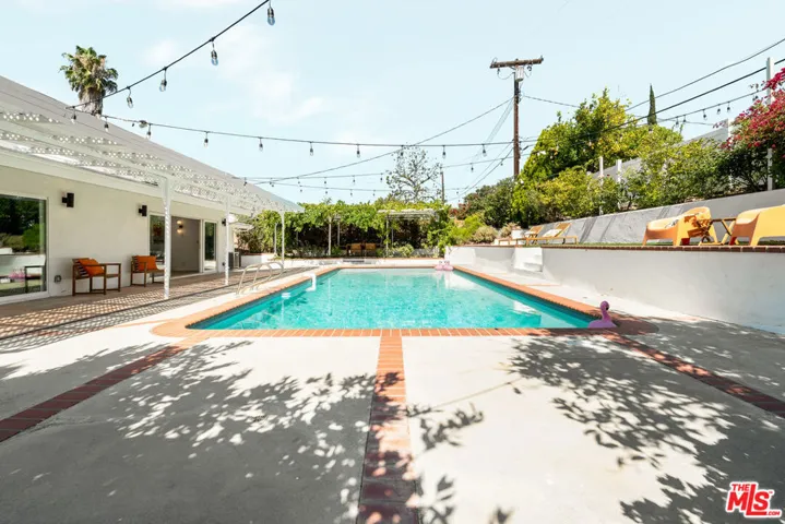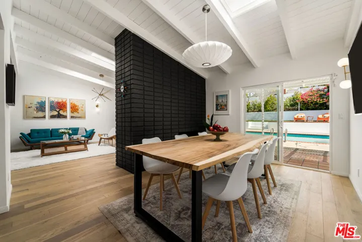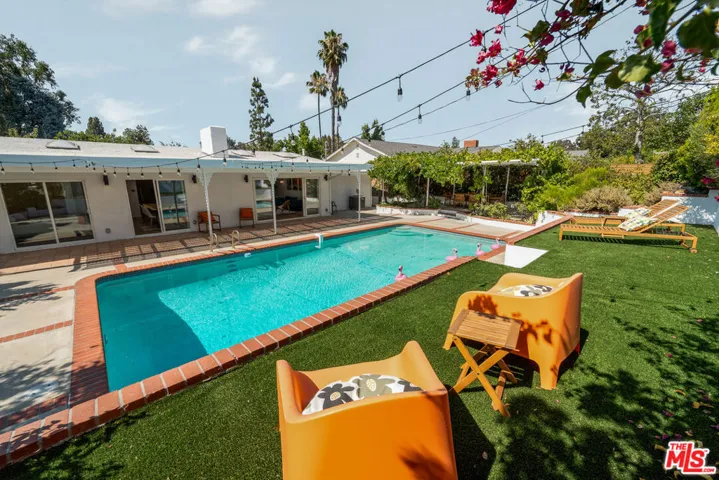 ***OFFERS DUE BY WEDNESDAY DEC 10 @12pm*** Tucked away at the end of a serene cul-de-sac in the coveted Woodland West development, this iconic residence, originally crafted by renowned architect Charles Du Bois A.I.A., effortlessly blends timeless mid-century architecture with elevated modern luxury. Gated for privacy and framed by an enchanting, grassy front yard dotted with mature, fruit-producing trees, the property makes a striking first impression. Step through dramatic double doors into a home that honors its architectural roots while embracing today’s finest upgrades. Vaulted, beamed ceilings and Du Bois’s signature double-sided fireplace anchor the sun-soaked living spaces, where skylights flood the interiors with natural light and white oak floors flow seamlessly throughout. The heart of the home is a stunning custom chef’s kitchen featuring sleek white oak cabinetry, polished concrete countertops, luxury appliances and direct access to the garage for everyday ease. Meticulously upgraded throughout, the home boasts new electrical and plumbing systems, updated HVAC, EV charger port, a full security camera setup, whole-home audio with integrated speakers, and so much more. The private primary suite is a true retreat, complete with a large closet, direct access to the backyard, and a spa-inspired bath with a floating double vanity, soaking tub, heated floors, and a smart bidet toilet. Additional bedrooms are generously sized, with the Jack & Jill bathroom also offering heated floors and designer finishes. Step outside to an entertainer’s paradise: a resort-style backyard with a sparkling pool, lush lawn, mature fruit trees, and a charming, vine-covered outdoor dining area. Lounge beneath the covered patio, soak in the sun from the upper yard, or enjoy the garden-like serenity surrounding you. Perfectly located just minutes from the best of Woodland Hills, Calabasas, and Malibu with premier shopping, dining, houses of worship, and convenient 101 freeway access. Great schools including top-rated Calabash Elementary, with the option to waiver into Calabasas schools. A rare offering, curated by designer and builder Gregory Storm, where architectural significance meets luxurious Southern California living. Welcome home.