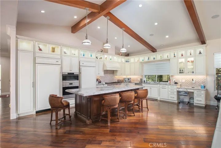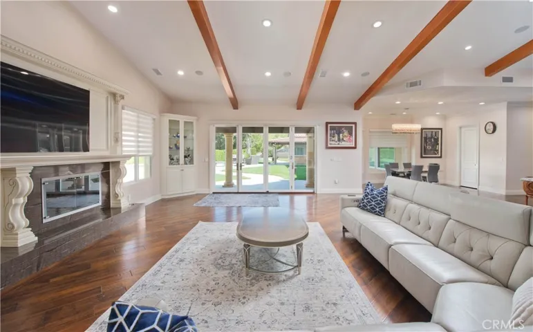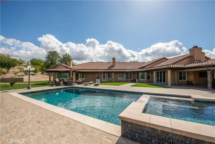 Experience refined California living in this beautifully appointed and rare 5-bedroom single-story home located in the highly sought-after gated Sand Canyon community. You’ll be in the upper level main house on a 2.6-acre view lot—half on a lower level ideal for horses, a vineyard, or an orchard—this estate offers exceptional space and versatility. A gated courtyard entry leads to a formal living room with sweeping mountain views and a spacious family room with high ceilings, hardwood floors, a brick fireplace, and French doors to the backyard. The kitchen features double islands, pendant lighting, a bay-window breakfast area, and a walk-in pantry, with a butler’s pantry connecting to the dining room. The primary suite includes a sitting area, fireplace, mountain views, and two walk-in closets. Outside, enjoy a serene backyard with a sparkling pool, expansive patio, and multiple lounge areas—ideal for relaxation and outdoor gatherings. A 4-car garage and full vinyl fencing complete the property.
