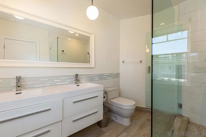 Single-level Cape Cod style contemporary home (built 2015) in the Muirlands neighborhood of La Jolla. Clean and beautiful interior with 9-ft ceilings, open floor plan, Duchateau hardwood floors throughout, and large pocket doors in living room that open to large backyard with pool, jacuzzi, BBQ, grassy yard and separate guest house with rooftop deck with ocean views looking south. Preference for 12-month lease or longer; available December 1, 2025 (unfurnished). Located within Bird Rock Elementary and La Jolla High School districts. Renter pays all utilities. Main house is 4 bed 2 1/2 bath and detached guest house behind pool is 1 bed 1 bath. N/A