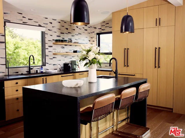 Tucked away in the exclusive Hollywood Hills, this private retreat seamlessly blends Old Hollywood glamour with modern luxury. Just minutes from the iconic Hollywood Sign, top studios, and world-class dining, it offers the perfect balance of seclusion and convenience. Designed with exquisite craftsmanship, the home showcases top-of-the-line finishes, including Brazilian woodwork, Italian marble, and bespoke wood cladding, plus a smart home system, creating an atmosphere of timeless sophistication. Expansive windows flood the space with natural light while framing breathtaking views. The main house features two bedrooms and 2.5 baths, while a detached bonus room serves as a versatile third space with its own bath, ideal for guests or a creative studio. Outside, the beautifully designed oasis invites effortless entertaining with a sparkling salt water heated pool, spa, fire pit, built in BBQ area, 2 car garage, all set against the backdrop of the serene Hollywood Hills. A true masterpiece, where classic elegance meets contemporary tranquility.