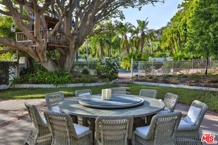 Experience the magic of Point Dume in this exceptional compound, privately tucked behind gates on coveted Cliffside Drive, where unobstructed ocean views pour into nearly every room. Set directly across from the iconic Point Dume Headlands, this lush, resort-style sanctuary embodies the quintessential Malibu lifestyle. Thoughtfully updated with a new generator, new septic system, new roof, and fresh interior and exterior paint, the home seamlessly blends modern comfort with coastal luxury. Designer-furnished with a boutique-hotel sensibility, the interiors feel warm, stylish, and effortlessly refined. The main level offers beautifully curated living spaces. Massive sliders line the entire front of the home, welcoming cool ocean breezes and creating an ideal indoor-outdoor flow for entertaining on the front patio. This floor includes one bedroom with an en-suite bath, a formal living room with a fireplace and sun-filled windows, oak flooring throughout, beamed ceilings and a separate library/den with its own bathroom, and a spacious media room with direct access to the backyard. A double washer-dryer laundry room with an additional full bath completes the level. Upstairs on the second level, the serene ocean-view primary suite features a luxurious spa-inspired bathroom with a large step-in shower, clawfoot tub, and dual cedar walk-in closets. Down the hallway are two additional bedrooms, each with its own bathroom and private deck. Outdoors, the property unfolds into a private paradise: a graceful coral tree is the focus as you pull into the private entrance. A large grassy yard, a gated and newly resurfaced tennis court with night lighting, a deep kidney-shaped pool, a charming treehouse, an outdoor BBQ area, and a cozy fire pit, each surrounded by mature tropical landscaping that ensures complete privacy allows one to be fully emerged in the property with no need to go anywhere but stay home. Just steps from the sand and moments from hiking trails, whale-watching lookouts, local restaurants, and everyday amenities, this rare Point Dume estate captures the true essence of Malibu living. A true trophy property in every sense. Available furnished.