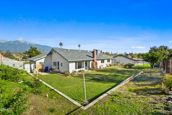 Welcome to this bright and spacious 4 bedroom, 2 bathroom single-story home nestled in a desirable Rancho Cucamonga neighborhood with beautiful mountain views. Set on a generous lot, this property features a long curved driveway leading to an inviting front porch and a clean, well-maintained exterior. Inside, you’ll find an open living and dining area filled with natural light, highlighted by vaulted ceilings, fresh flooring, and a classic brick fireplace that anchors the space. Large sliding glass doors open to the expansive backyard, creating a seamless indoor-outdoor flow perfect for gatherings or quiet relaxation. The kitchen offers ample cabinet space, a layout ready for your personal touches, and direct access to the backyard. Both bathrooms have been tastefully updated with modern vanities, sleek fixtures, and bright finishes. All four bedrooms are generously sized, including a spacious primary suite with dual closets and a private en-suite bathroom. The backyard is an impressive blank canvas with plenty of room to garden, play, or design the outdoor retreat of your dreams–all while enjoying stunning views of the surrounding foothills. With its wide-open layout, fresh updates, and prime Rancho Cucamonga setting, this home offers incredible potential and comfort in one of the area’s most beloved communities.