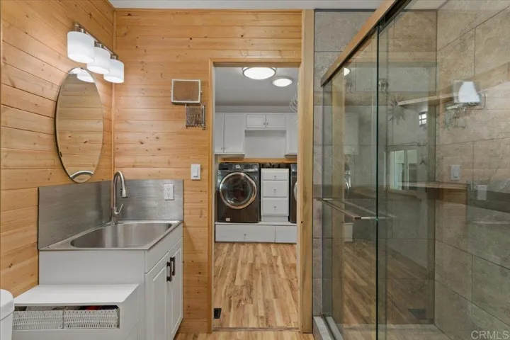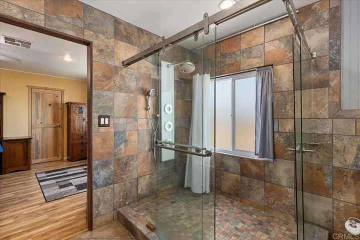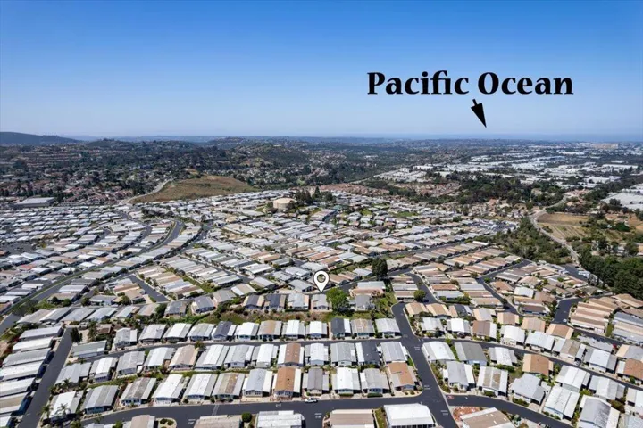 Beautifully remodeled 3 section home that sits high on top of a cul-de-sac street within in Rancho Vallecitos; a resort style 55+ community that is very social & active and has rent control! VIEWS from every direction; Sunrises, city lights, mountains, and winter snow caps can be enjoyed from your deck and Living room windows, while sunsets and a peekaboo ocean view can be enjoyed from the Primary Bedroom! The shed has been improved to be the max legal size and features an automatic garage door and can fit a motorcycle. The home has many other special upgrades including dual pane windows, refinished ceilings, custom interior doors and finishes, a newer 40 gallow water heater, updated Kitchen and Bathrooms, butcher block counters, wet bar, LED lights, and more! There is a spacious Living room with vaulted ceilings and high windows, as well as an additional Family room / Den and wet bar. The Primary Bedroom features a huge walk in closet and ensuite Bathroom with large custom shower and tub. The Guest Bedrooms has been converted to an office and also has it’s own ensuite Bathroom. The Utility Room is larger than most with extra space to double as an office work space. Convenient to guest parking. Monthly space rent is $740 per month and is under city rent control. 1 dog, or 1 dog & 1 cat, or 2 cats okay if < 20 lbs / no dog walking or permanent pet fencing allowed in park. There is a large dog park within this community just down the street from this home that you are allowed to walk your dog to. Age 55+ (2nd resident can be 45+), must be owner occupied.