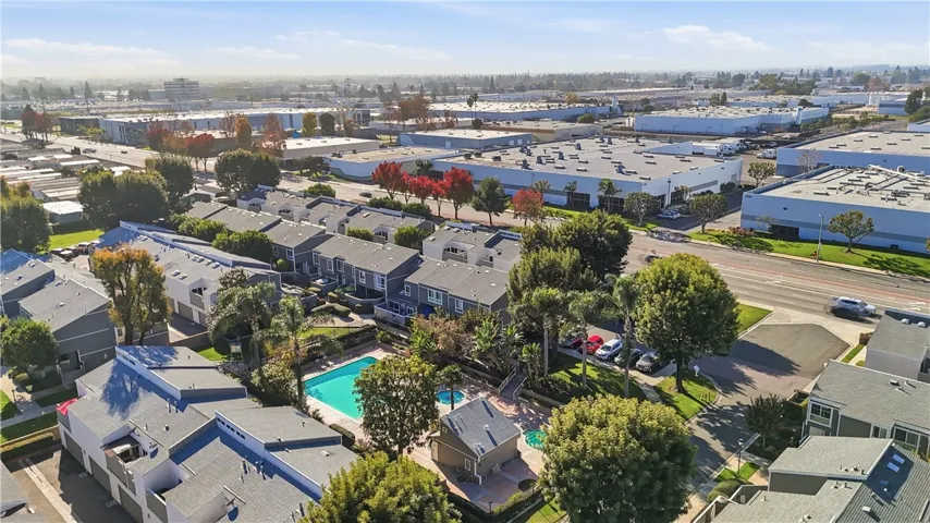 NEW ROOF (approximately 2 months old)! Turnkey townhome located in the highly desirable Village Walk Townhome community featuring 2 bedrooms and 1.5 bathrooms with vaulted ceilings and abundant natural light. The bright, open floor plan offers quartz countertops with a tile backsplash, a chandelier over the kitchen sink, step-in pantry, recessed lighting, and under-cabinet motion-sensor lighting. The living area is enhanced with wainscoting, crown molding throughout, new baseboards, tile flooring on the main level, and carpeted stairs and bedrooms. The upstairs bathroom features tile flooring, and the primary bedroom includes a walk-in closet with mirrored door. Additional highlights include solid core interior doors, mirrored bypass closet doors, newer windows and sliding glass door (approximately 2 years old), real wood decking freshly painted as a custom upgrade, ceiling fan in dining area and attic access. The home also features a Ring doorbell (to remain), security door, Google Nest thermostat, electric tankless water heater (approximately 3 years old), and central AC (installed 2010). The 2-car attached garage offers direct access (with exterior keypad entrance too) and interior laundry hookups. Community amenities include a pool and landscaped greenbelts. Conveniently located near South Coast Plaza, Segerstrom Center for the Arts, OC Fairgrounds, major freeways, John Wayne Airport, and the coastal destinations of Newport Beach and Huntington Beach.