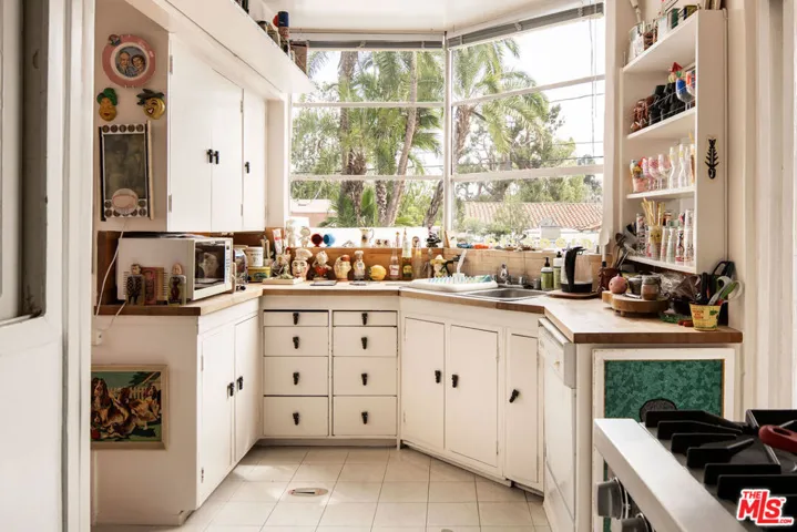 Presenting an excellent opportunity for the modern collector, Hollywood history buff, or developer/builder/end-user: An original portfolio piece by American architect William Kesling, known for designing a historic collection of homes in the Streamline Moderne style (a subtype of Art Deco aptly dubbed “ocean liner” style by the French) throughout Los Angeles. Given its close proximity to studios, there’s no surprise that it was originally used as a party haven for Hollywood’s tastemakers, but that was just the beginning. In 1980, this iconic residence was purchased by two-time Grammy-winning, Emmy- and Tony-nominated songwriter and art director Allee Willis, and the rest is nothing short of music history. Willis gave the architectural diamond its baby pink hue, but otherwise preserved its original identity while performing a complete restoration. Here, the former Motown Records dreamer would host lavish gatherings and themed jamborees which quickly became notorious throughout Hollywood’s social circles, her exclusive guest list including the likes of Cher and Joni Mitchell. The home would also serve as the birthplace of her vast body of work, resulting in a long list of smash-hit songs such as “September” and “Boogie Wonderland” by Earth, Wind & Fire, “Neutron Dance” by The Pointer Sisters, and “I’ll Be There for You,” the indelible theme song of NBC’s hit television show Friends. Over the years, she welcomed legendary recording artists and collaborators to the on-site state-of-the-art music studio (James Brown, Bob Dylan, and Cyndi Lauper are just a few). With an insatiable desire to create, she also sculpted and painted numerous art pieces. Willis was also an avid collector, adorning her home with countless pop culture treasures from the 1950s, ’60s, ’70s, and ’80s. Of her penchant for throwing parties, Willis notably once said in an interview, “I always had a music career, an art career, set designer, film and video, technology. The parties really became the only place I could combine everything.” Her storied festivities have been covered in publications as diverse as People, Life, The New York Times, The Wall Street Journal, and Rolling Stone. Beneath towering palms, the ’50s-inspired grounds feature a bowling-ball garden, private sand beach, and newly built poolside shower for the modern reveler.